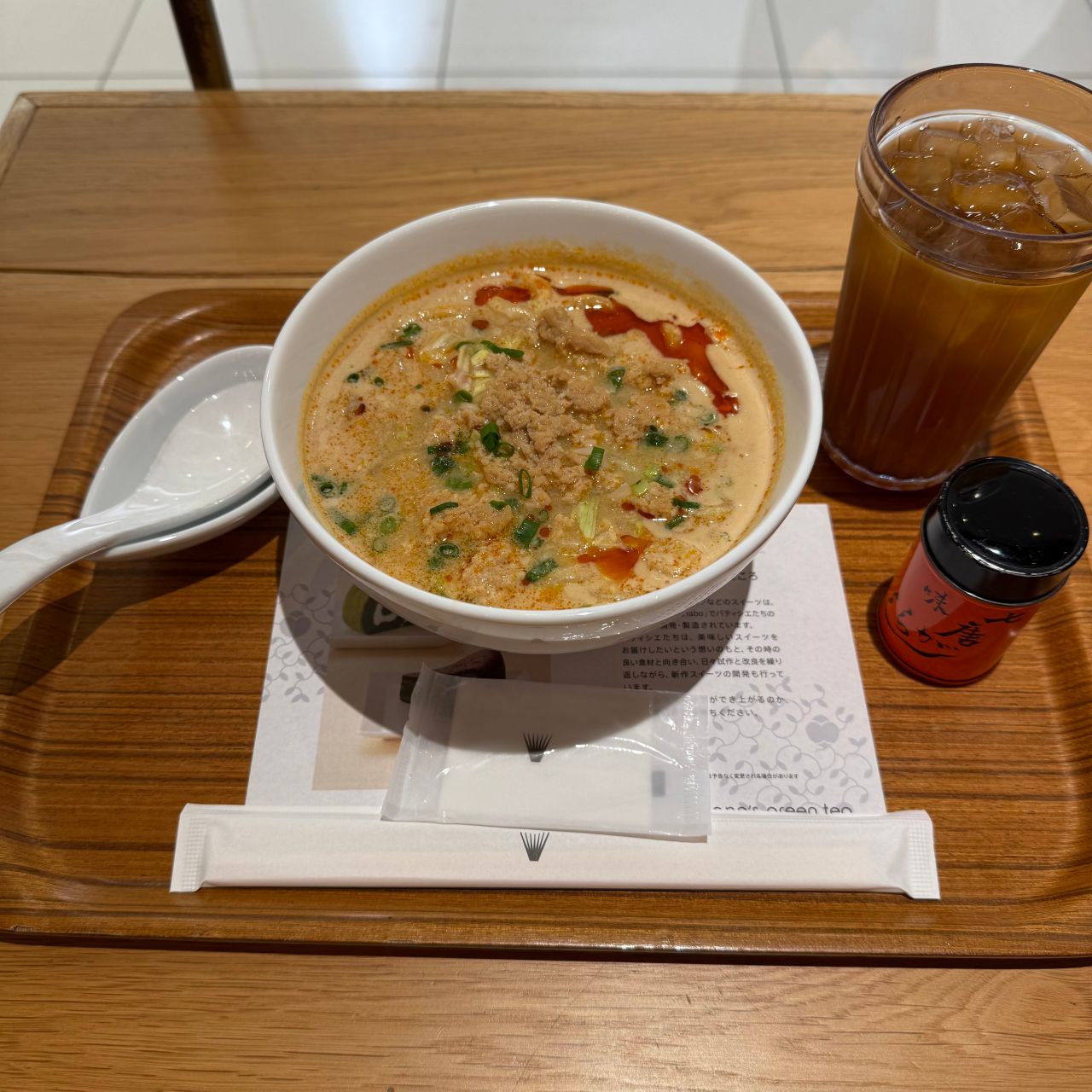 豆乳坦々うどん(1200円)+水出しほうじ茶(330円)