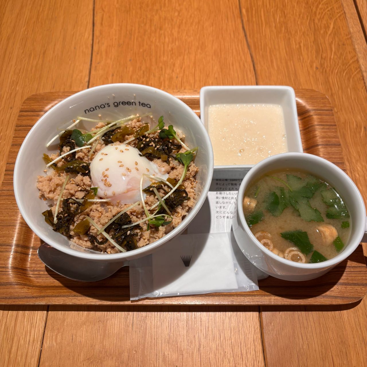 そして欠かせない温泉卵が乗った鶏そぼろどんぶりに、、、