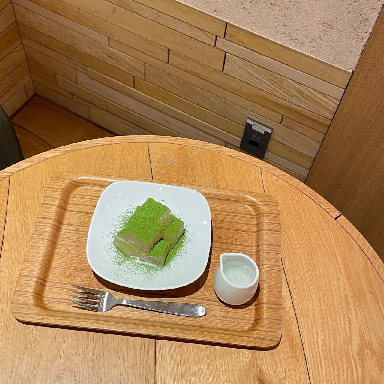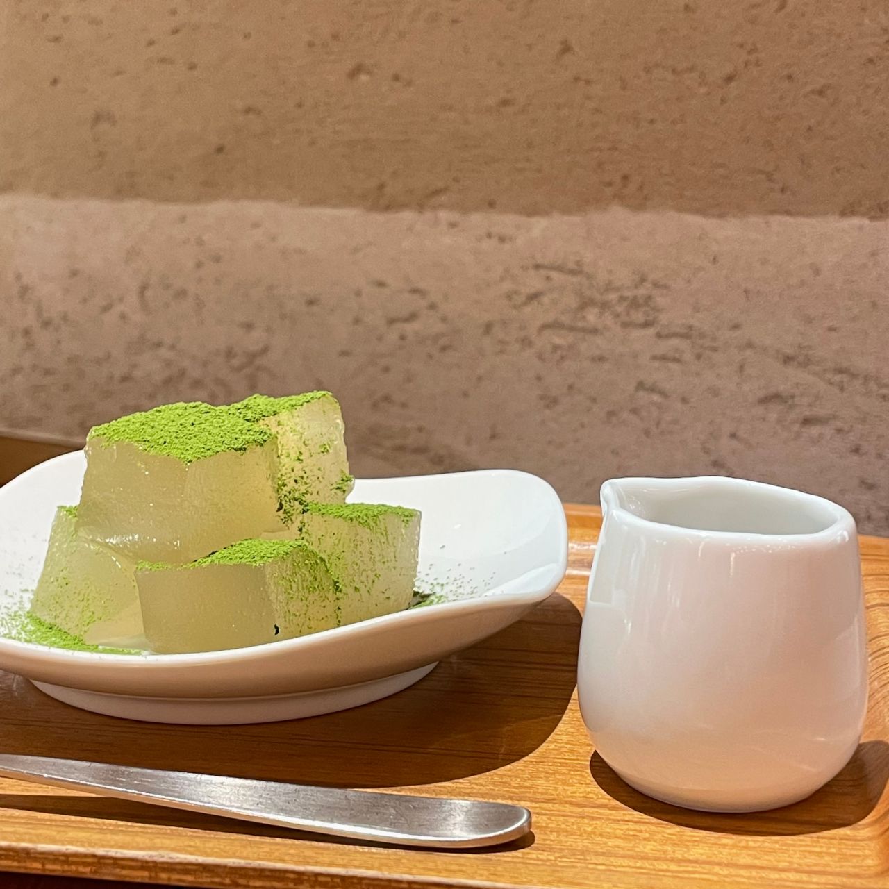 抹茶がまぶされて白蜜を添えてのご提供です。