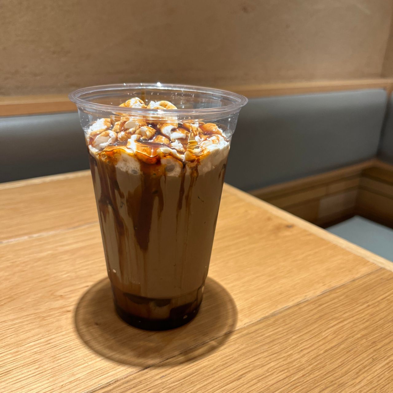 疲れたときやリラックスしたいときは黒蜜がかかった、しっかりとした甘さを感じるほうじ茶ラテで休憩してみませんか。