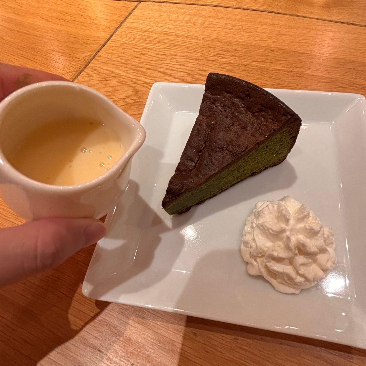 ほろ苦い抹茶ガトーショコラにあまーいホワイトチョコソースがよ