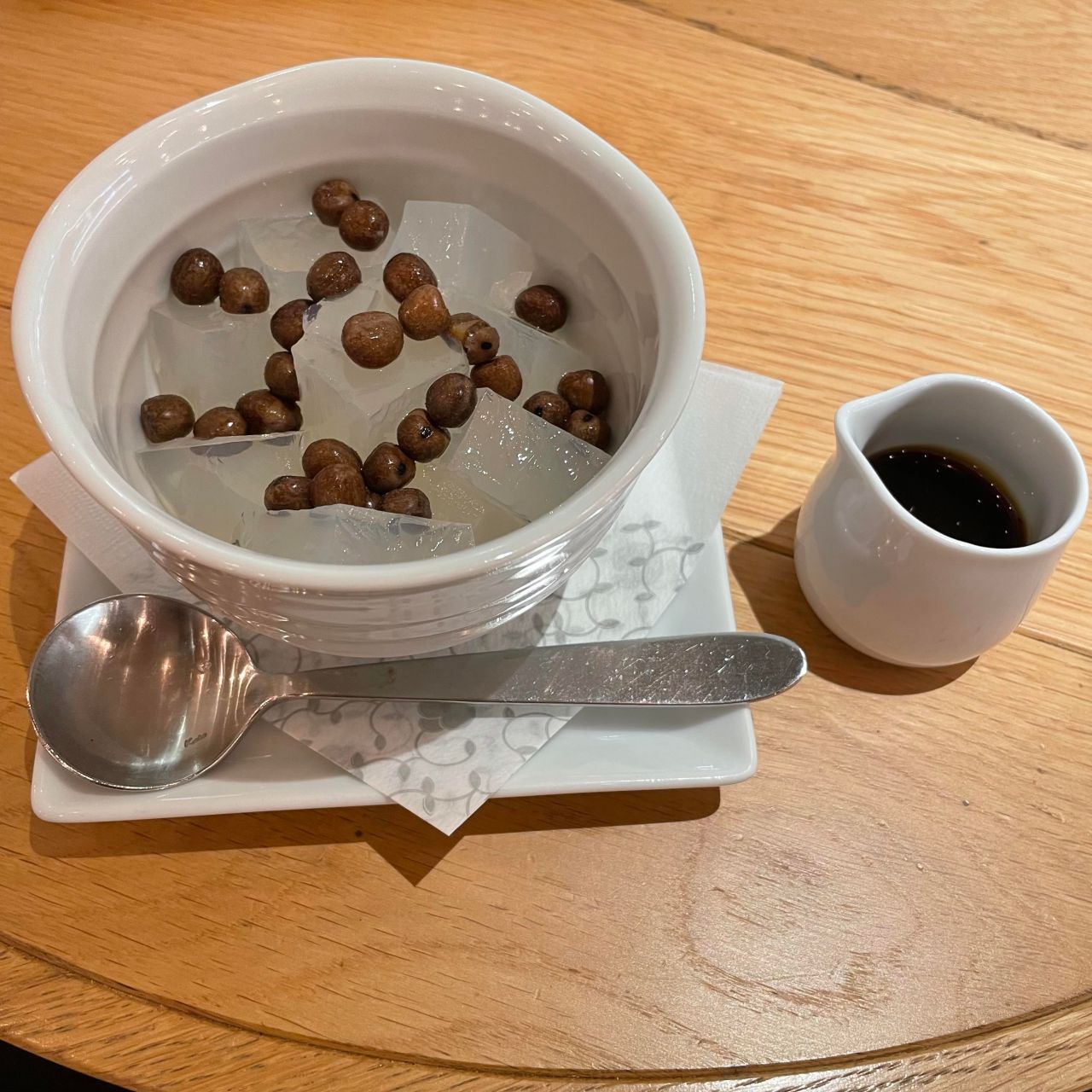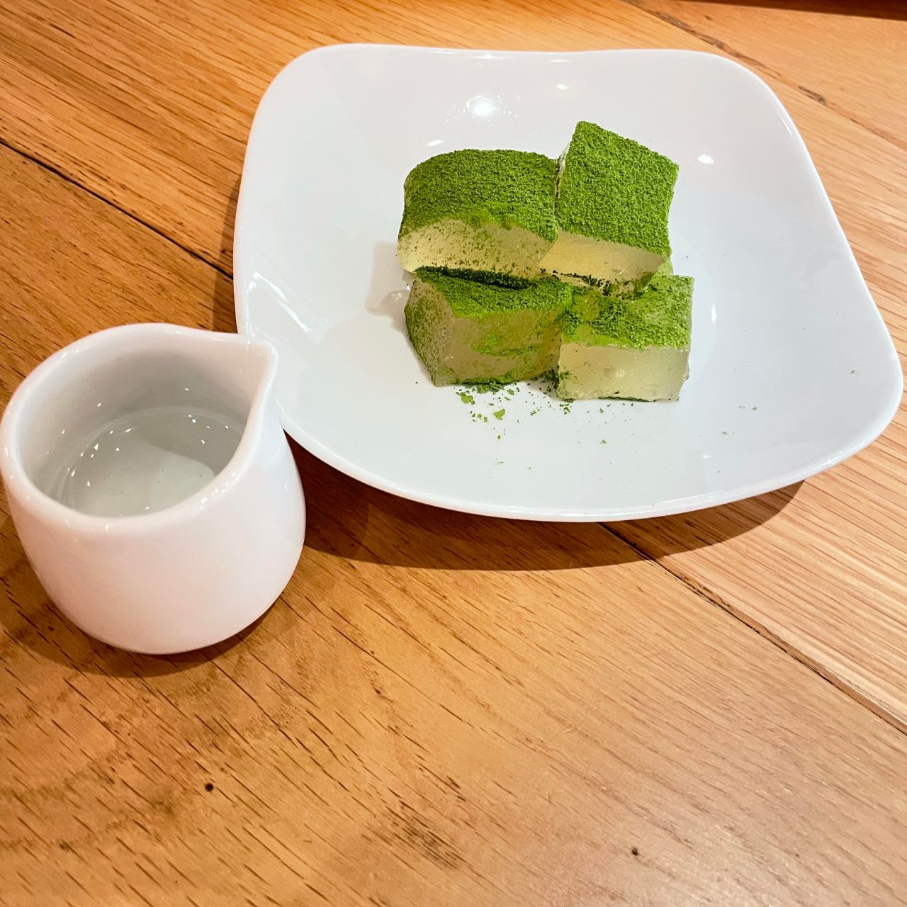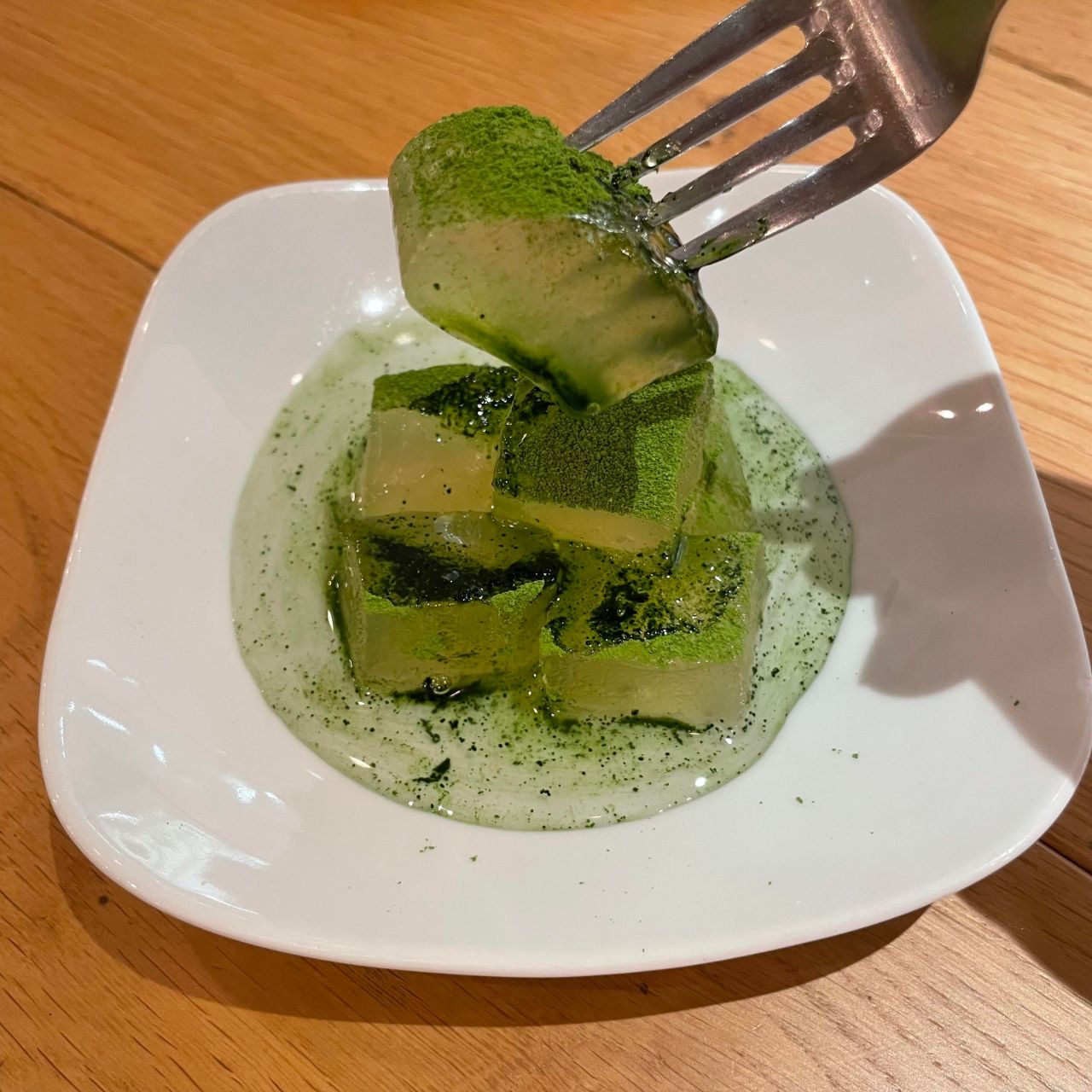 特に抹茶の粉はきな粉ほど主張が強くがないので、わらび餅を食べてみたいけど、きな粉のこなこな感は嫌だなって方は是非抹茶わらび餅をご賞味ください。(グランドメニューのわらび餅でもきな粉を抜くことは可能です。)