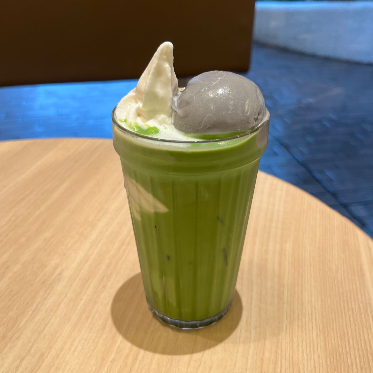 【抹茶ソフトクリームラテ+黒胡麻アイス】