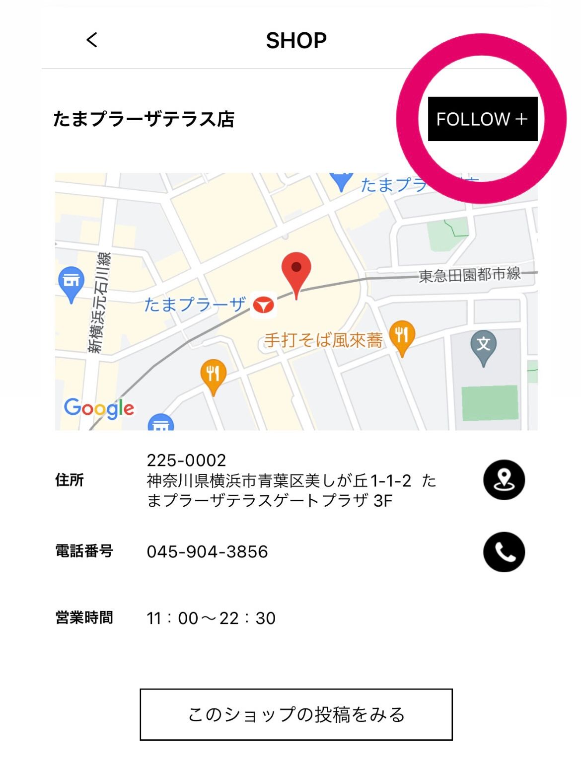 アプリのダウンロード&たまプラーザテラス店フォローで