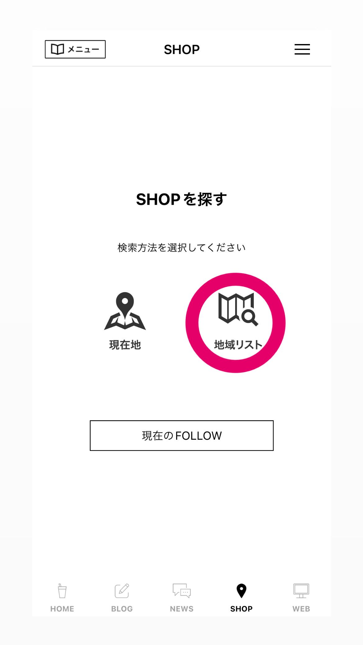 ③地域リスト→関東→神奈川→たまプラーザテラス店を選択する