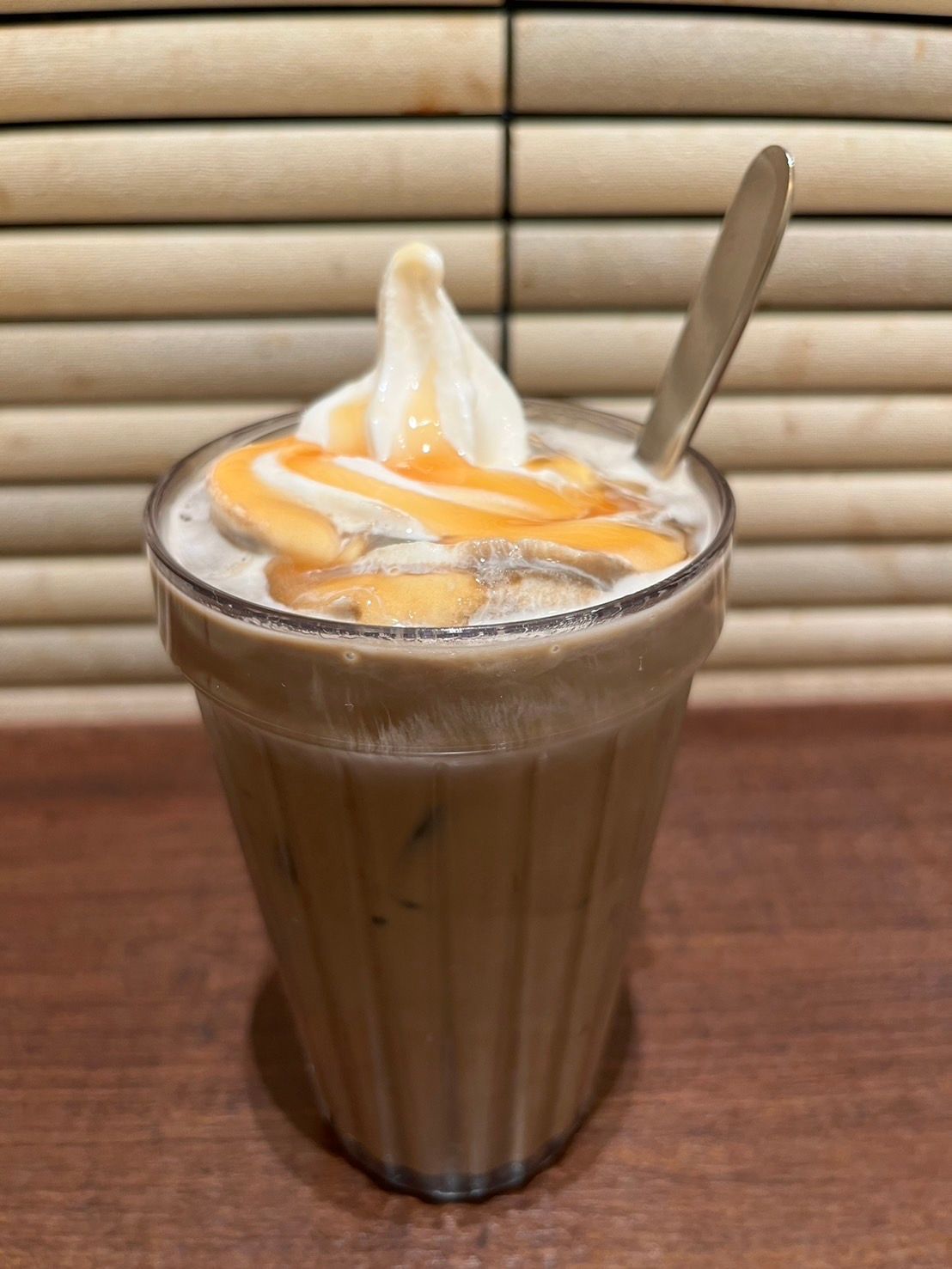 ★1位 ほうじ茶ソフトクリームラテ(+キャラメルトッピング)