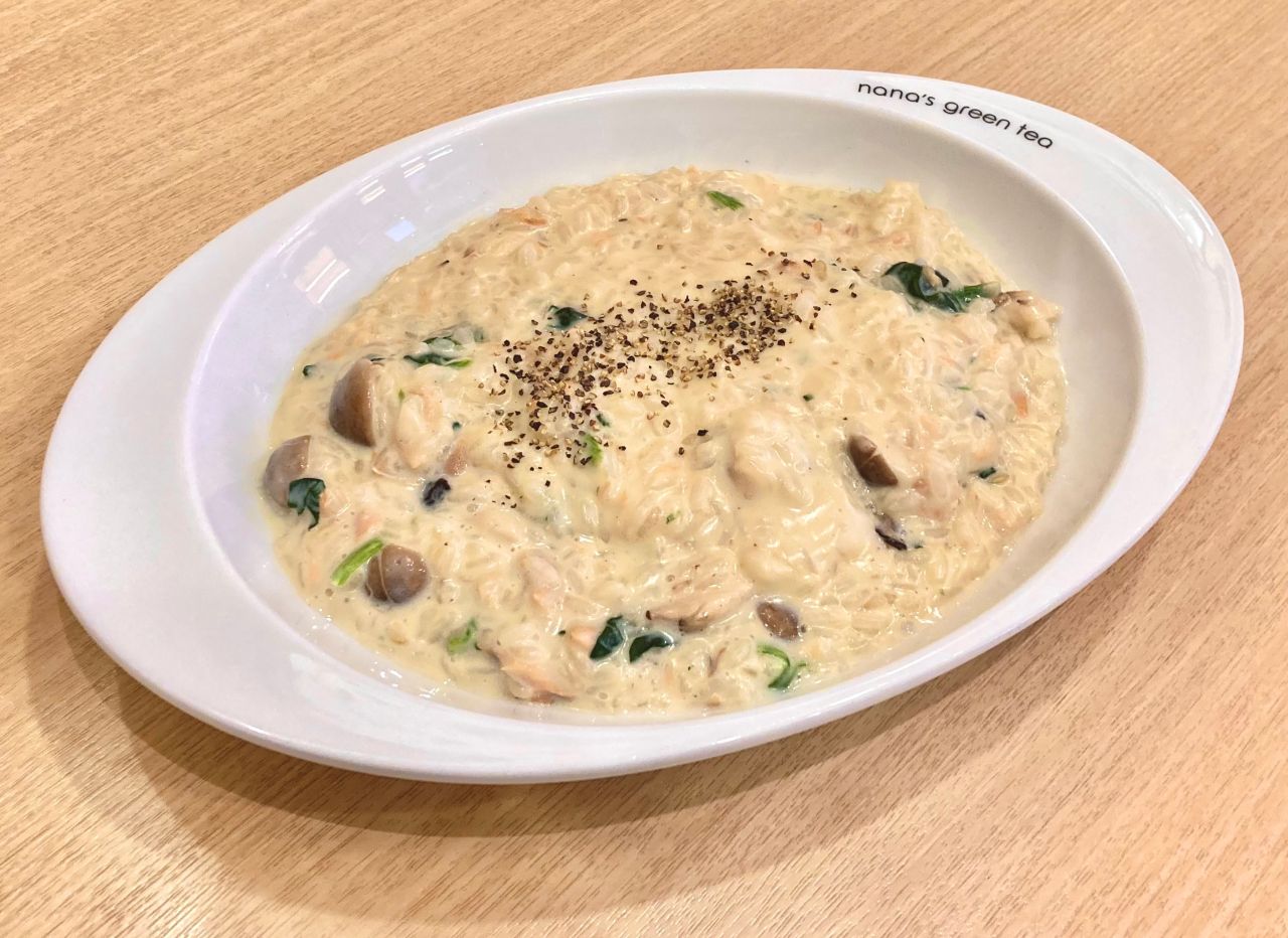 今日紹介するのは、「鮭とほうれん草の豆乳チーズリゾット」です。
