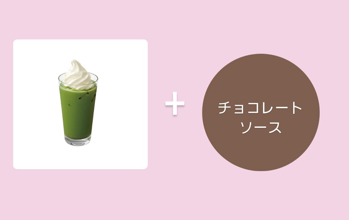 抹茶ソフトクリームラテにチョコレートソーストッピングです。