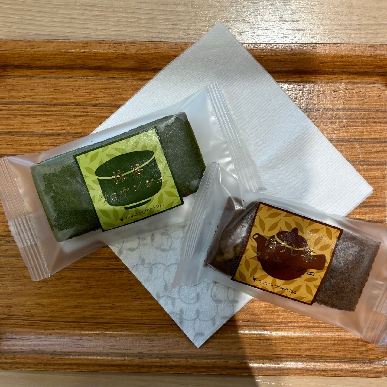 抹茶フィナンシェほうじ茶フィナンシェ2種類がございます。