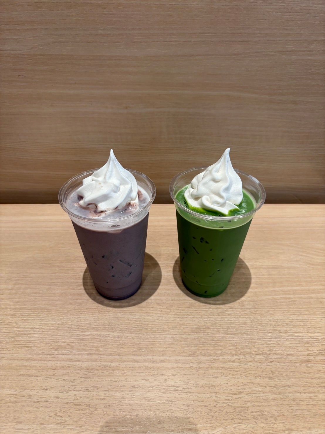 右:抹茶ソフトクリームラテ              M¥700/L¥800