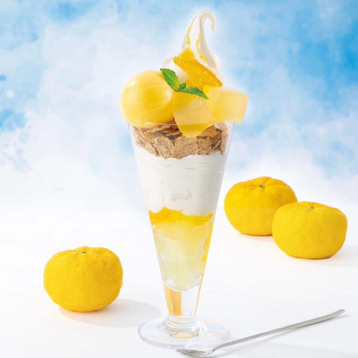 国産柚子の爽やかな酸味と、もちもちわらび餅の甘さで夏を楽しむ、夏パフェ☆彡