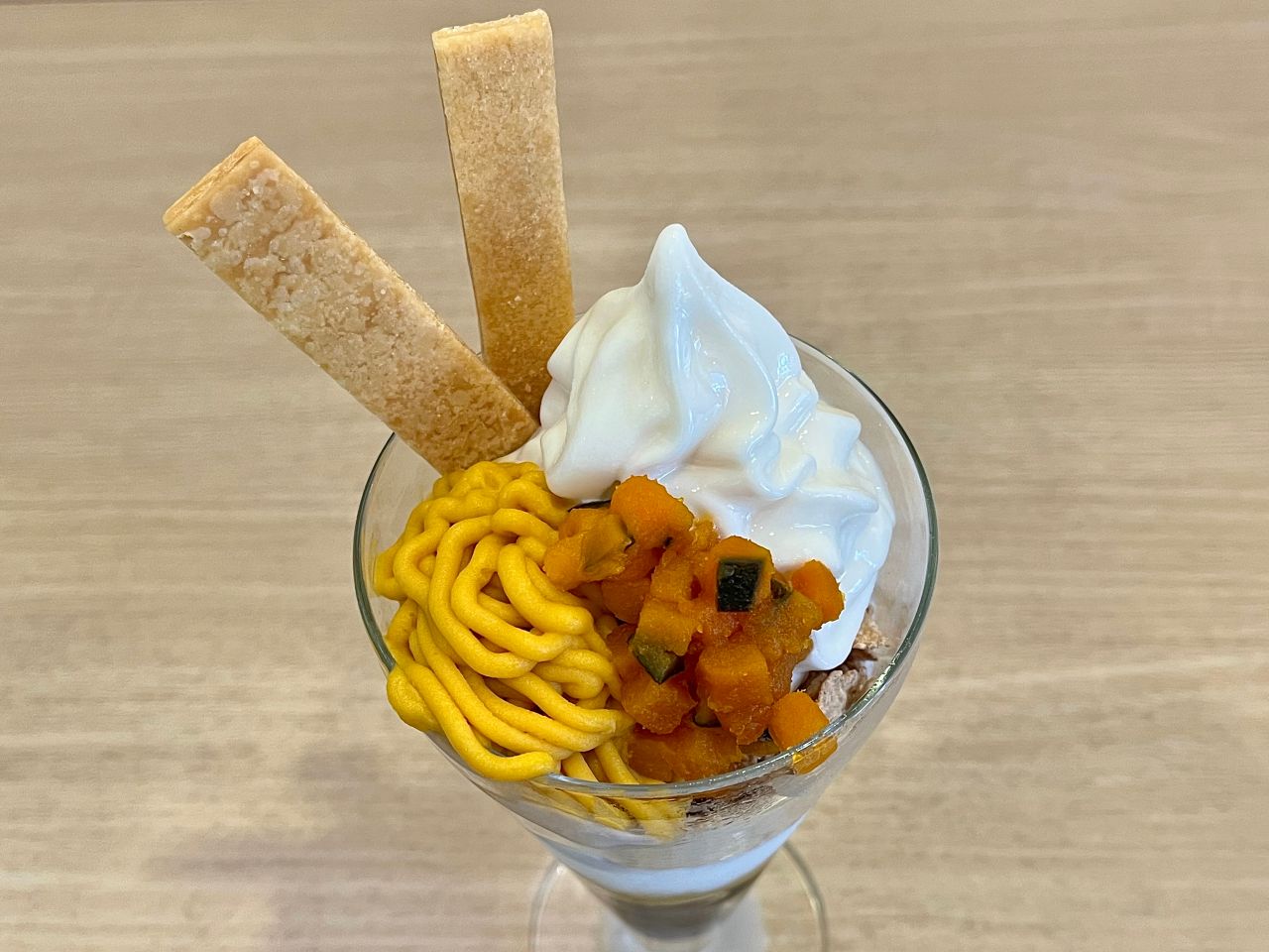 かぼちゃあんを使用したモンブランクリームと、かぼちゃをふんだんに使用した贅沢パフェ