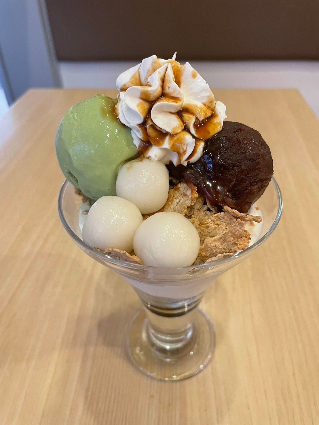 あずきもトッピングされているので「抹茶白玉パフェ」のような