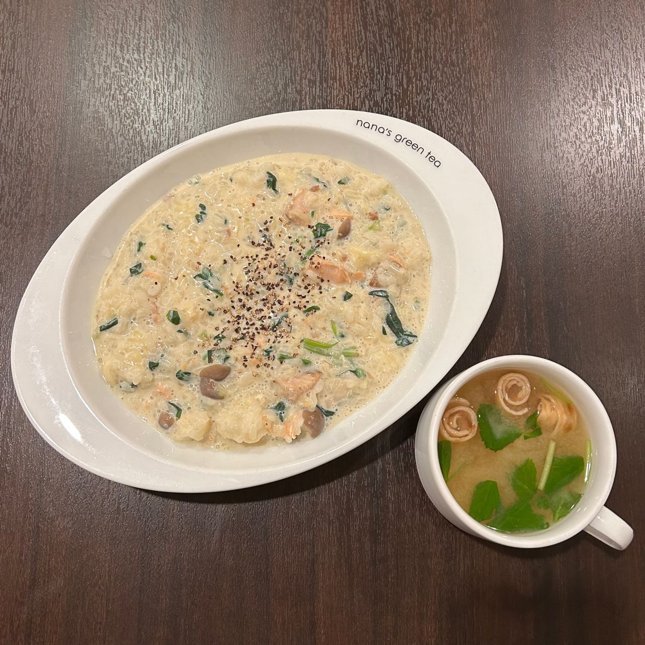 【シーズンメニュー】鮭とほうれん草の豆乳チーズリゾット・鮭のコーンクリームリゾット