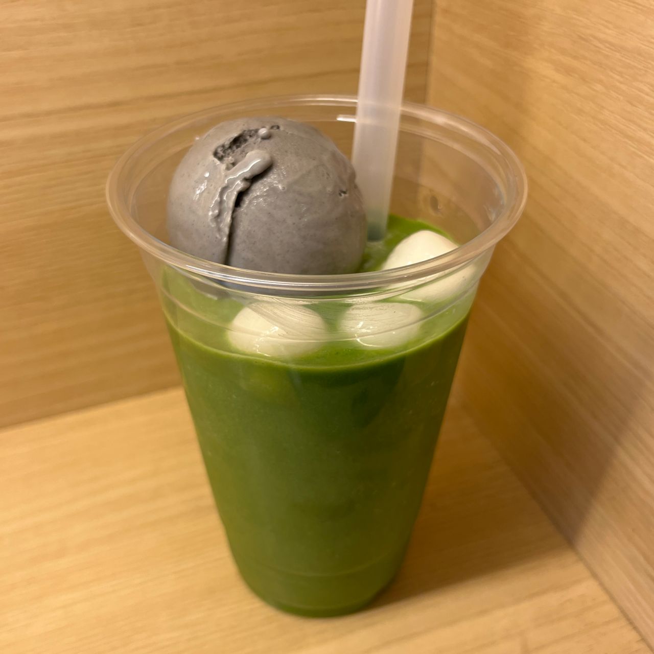 甘さが控えめな抹茶フローズンとクリーミーな黒胡麻アイスの相性は本当に抜群です。