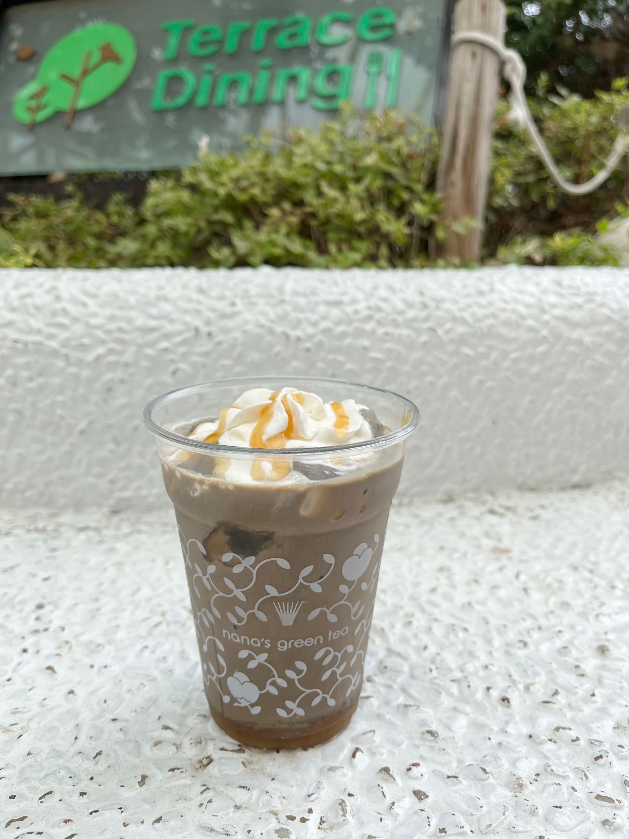 ホイップクリームとキャラメルソースをトッピング。