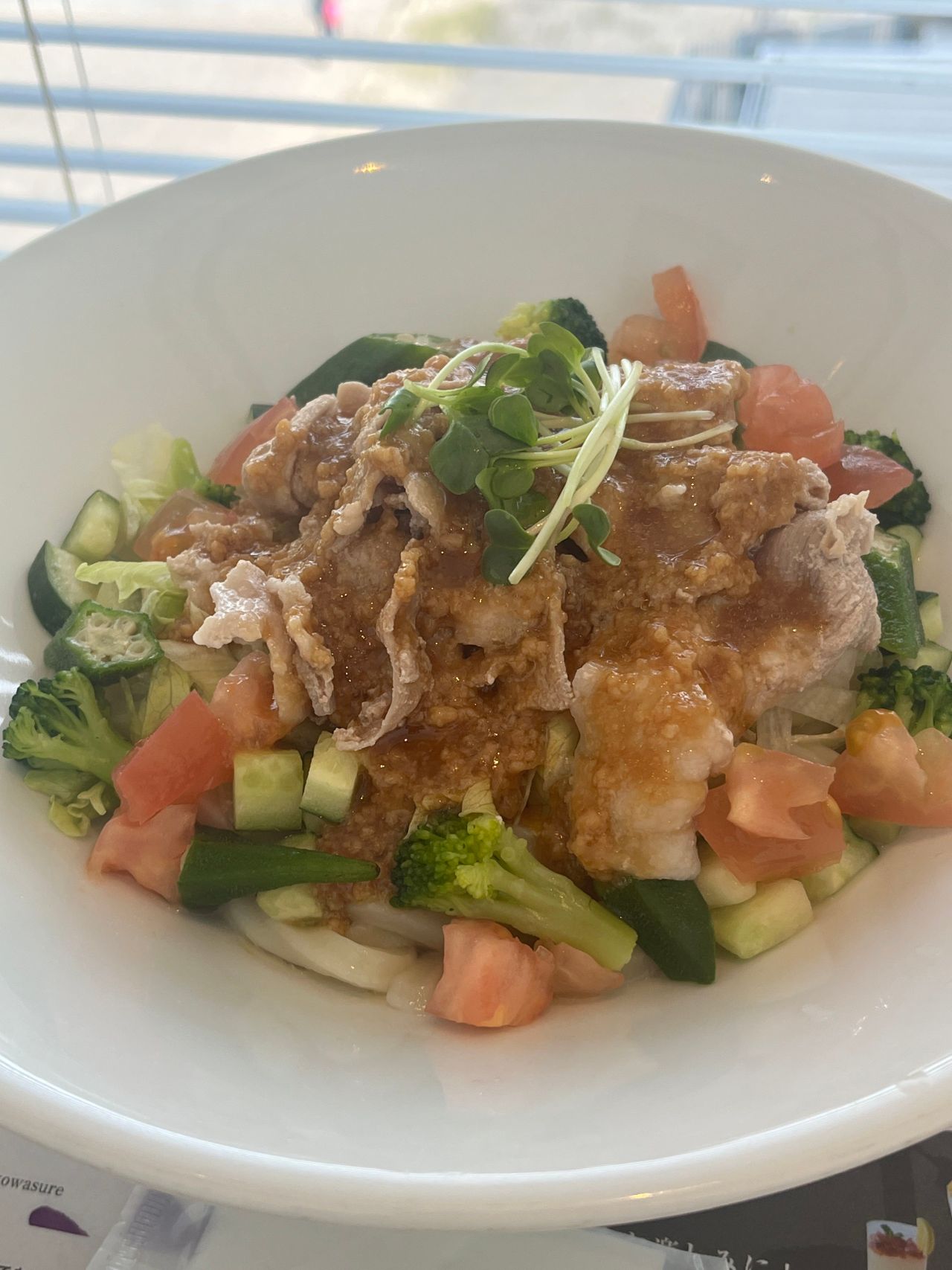 その上にアグー豚と醤油麹のドレッシングがかかっていて、無限に食べられる美味しさです✨
