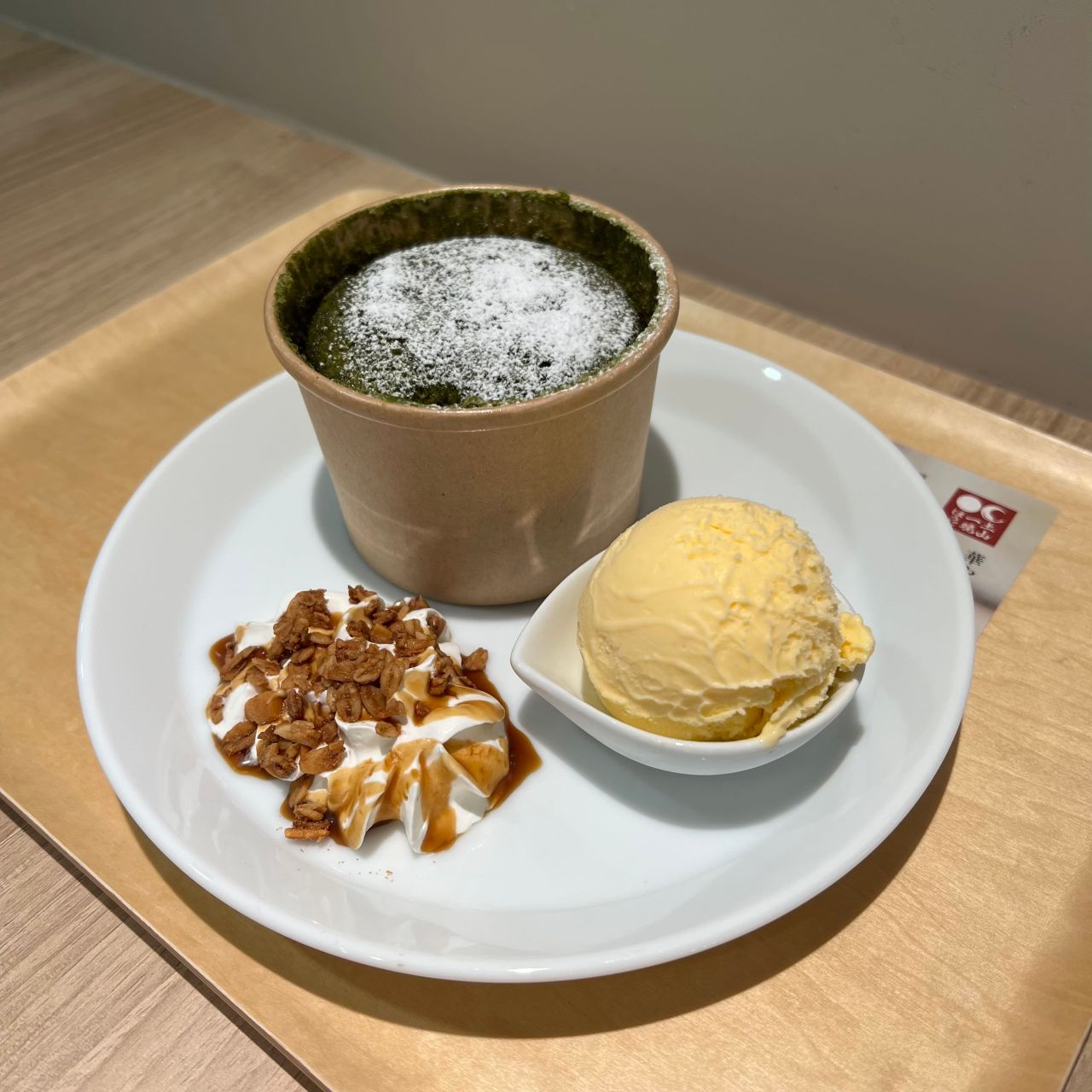 ふわふわ柔らかな食感のケーキから溶け出す温かく濃厚な抹茶チョコレートと、ひんやりアイスクリームの組み合わせが最高です♪