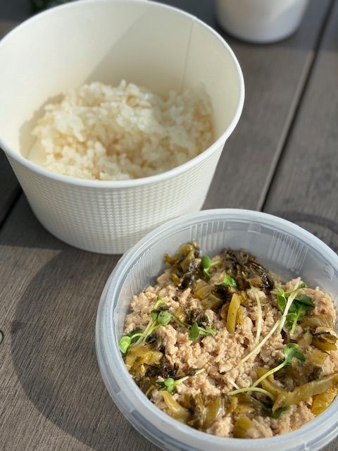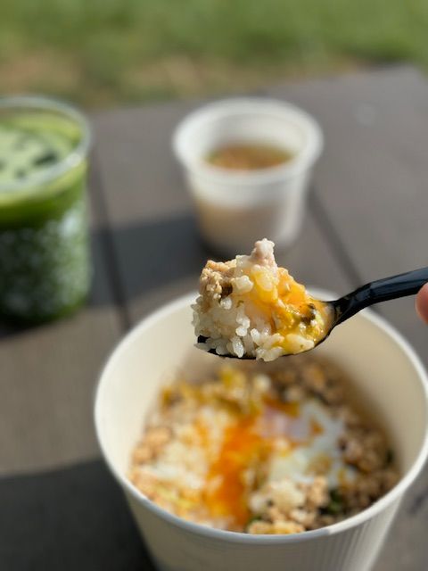 鶏そぼろどんぶり(S) + グリーンティー(I) ¥1.380