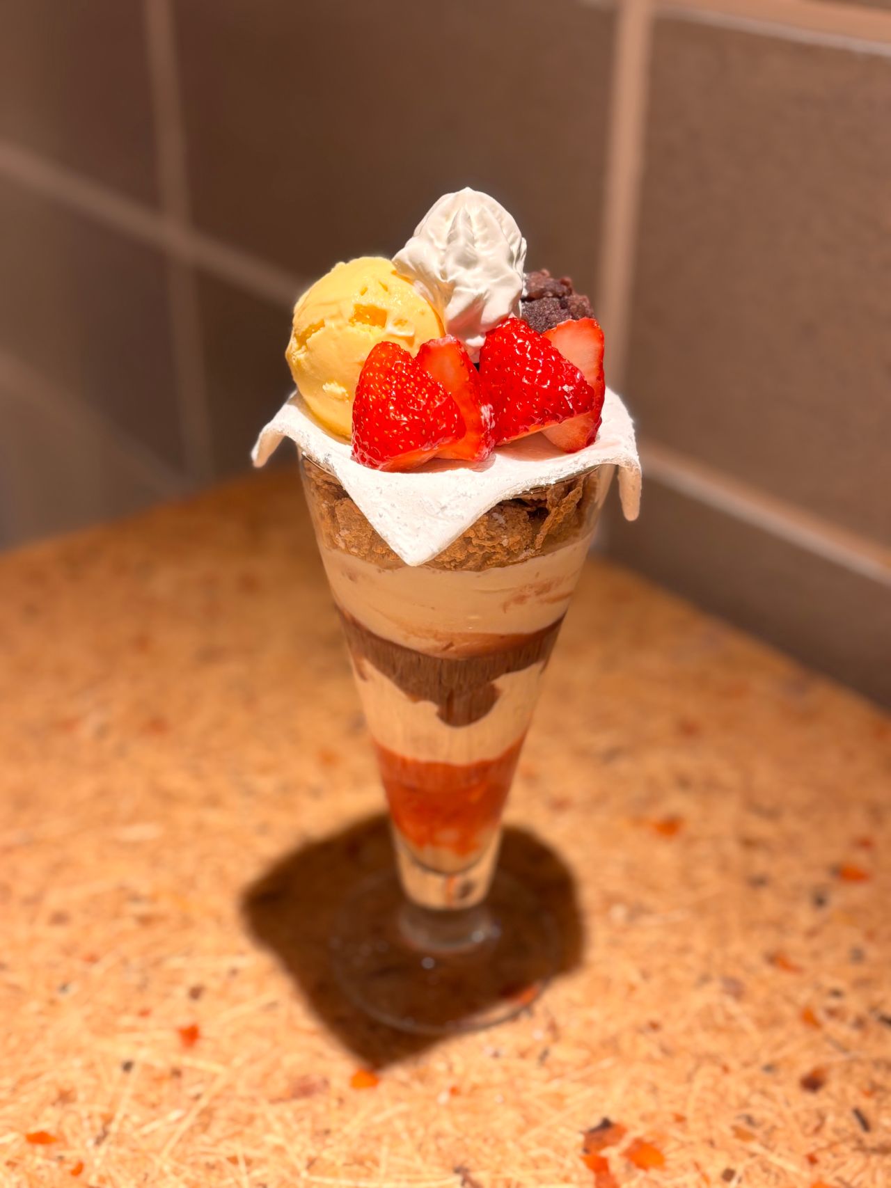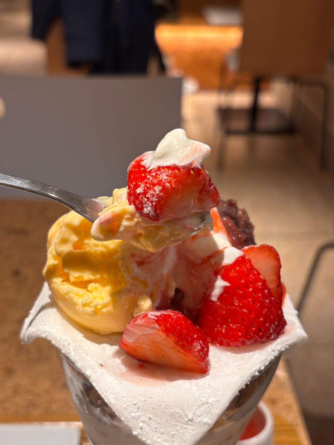 まるで苺大福を丸々たべているような、そんなパフェとなっています