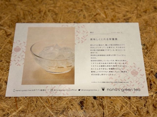 食べ終わられたあとに お時間があればチラッと読んでみていただけますと 『nana’s green tea』を少し身近に感じていただけたり、思いが伝わることと願っております