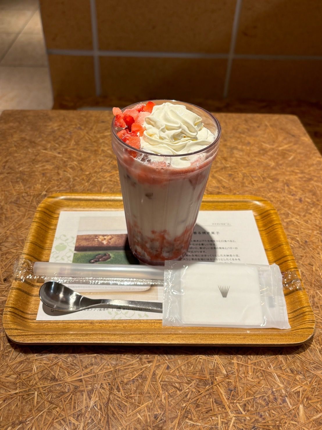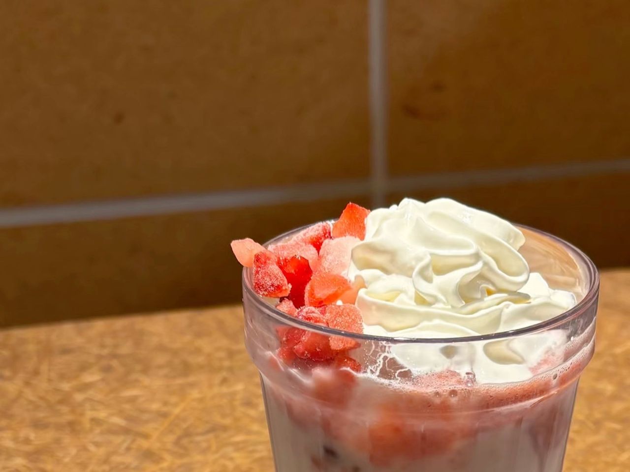 飲み進めると苺の食感と、粒白玉のタピオカみたいなもちもちとした食感を同時にお楽しみいただけます。