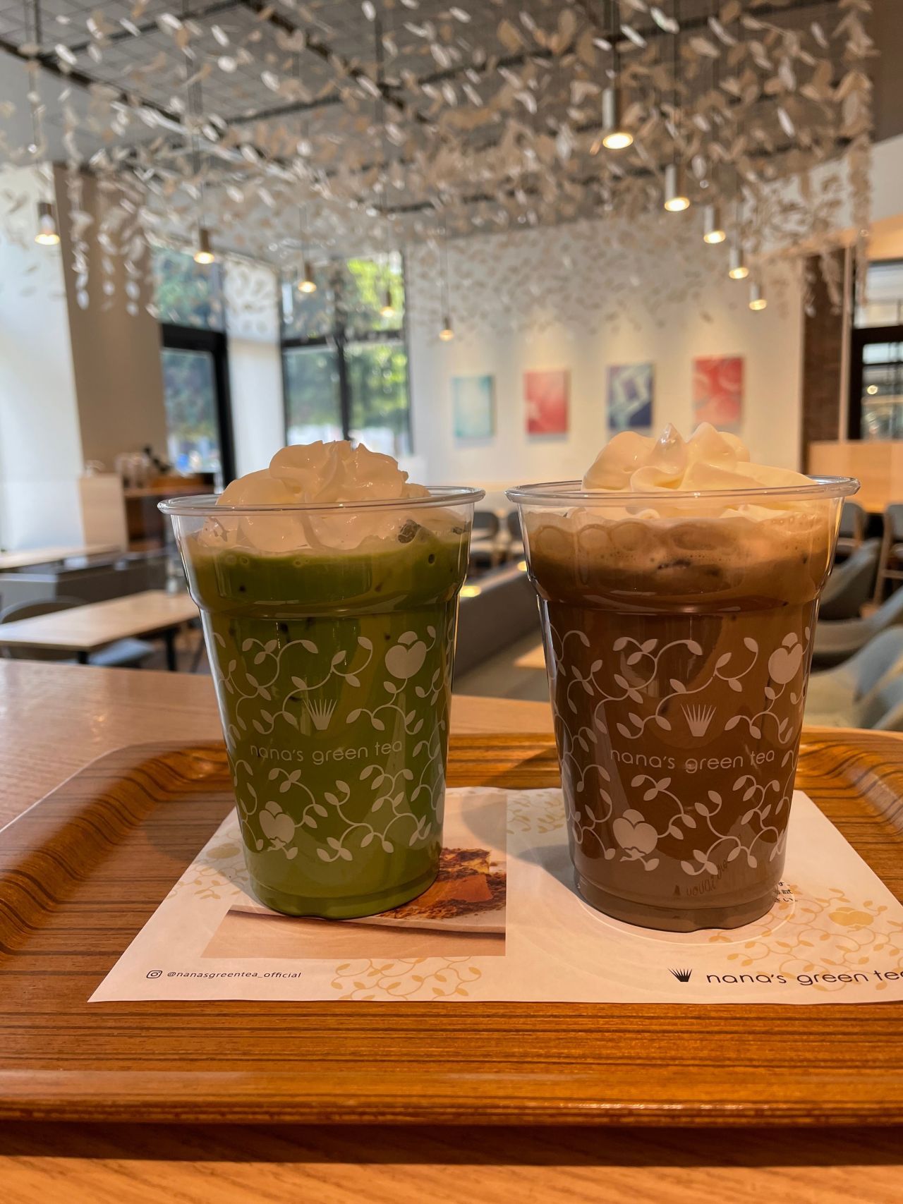 左の写真は ”抹茶ラテ” に、右の写真は ”ほうじラテ” にトッピングしました。