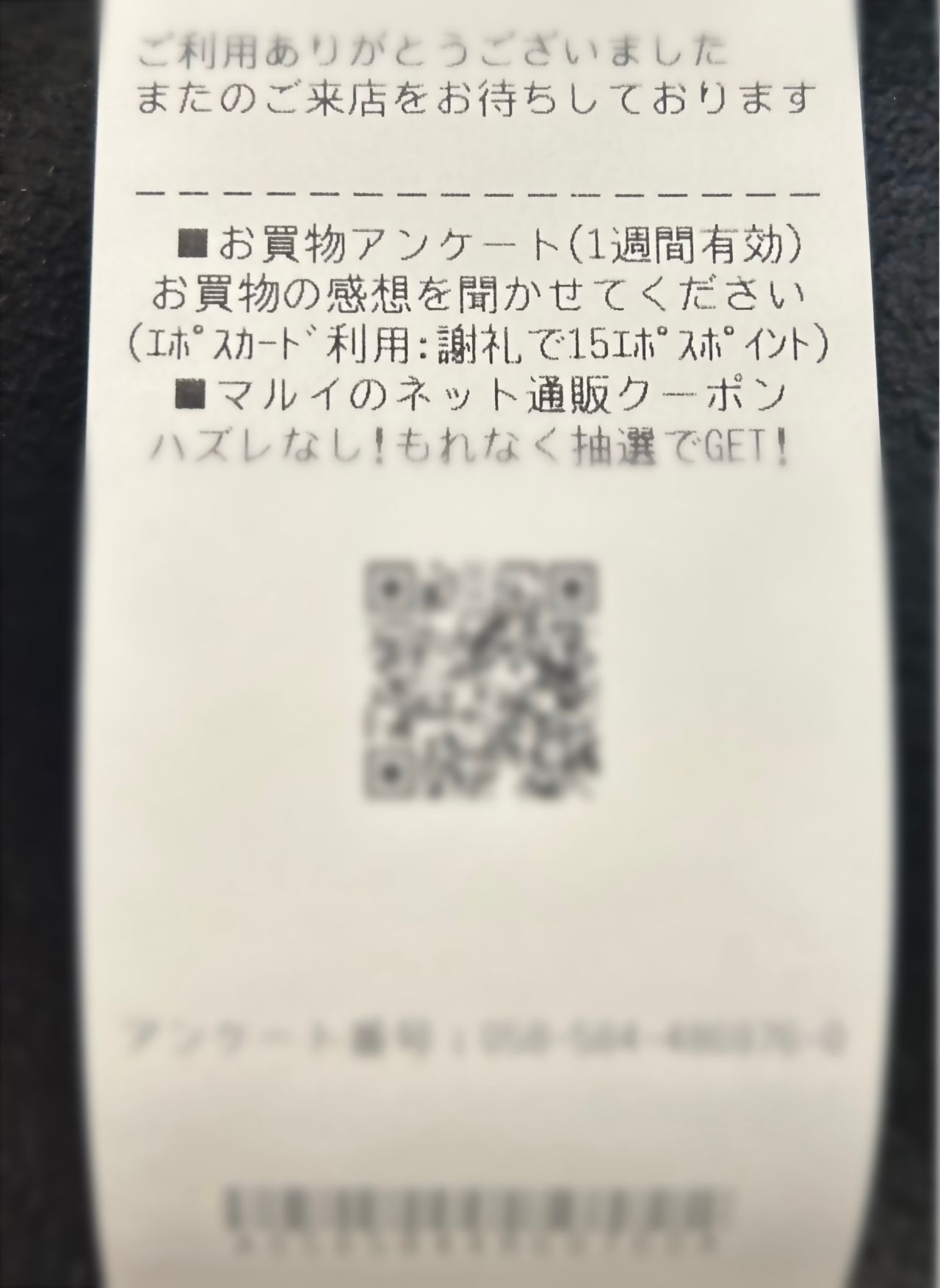 レシートに記載されているアンケートにお答えいただくと