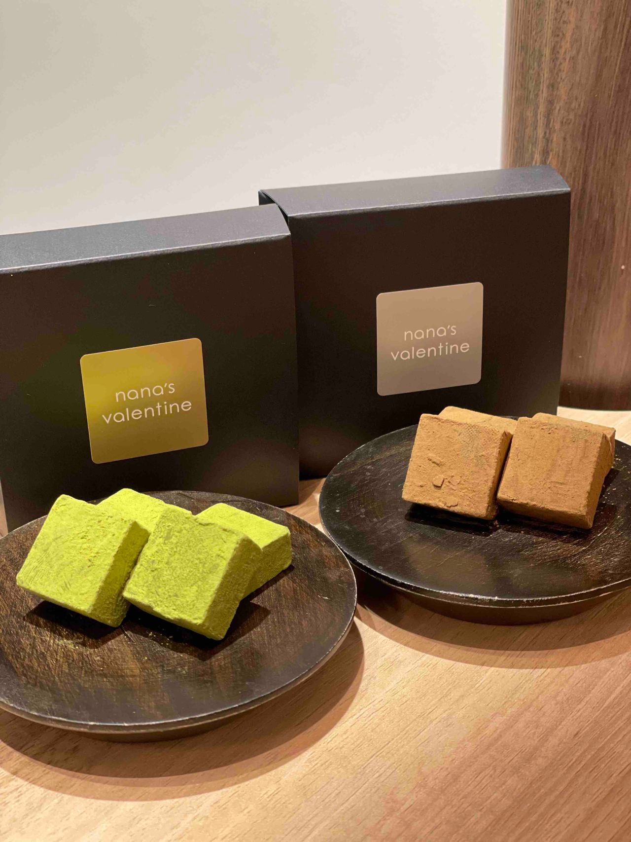 抹茶/ほうじ茶 生チョコレート(各4個/箱入り) ¥550(税込)